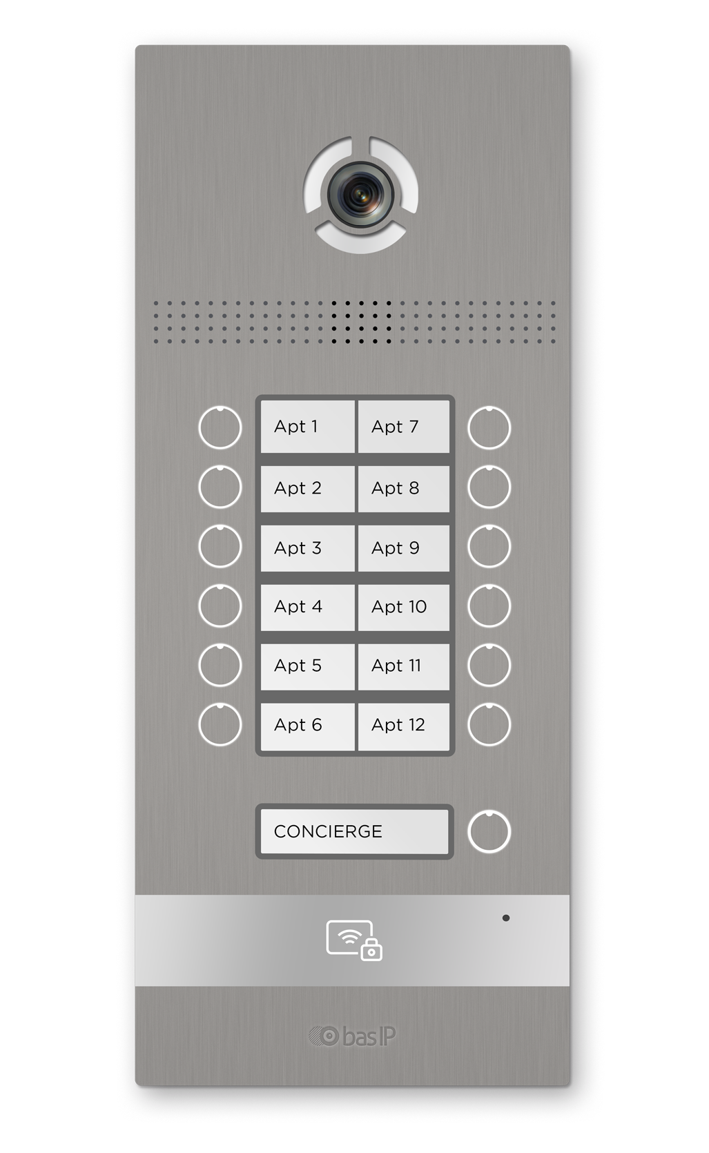 The BI-12FB is an unique multi-apartment entrance panel with a stylish design. It is equipped with a wide-angle camera and supports BAS-IP UKEY keyless access. Using the BI-12FB panel, it is possible to make direct calls to both internal monitors and the concierge.
